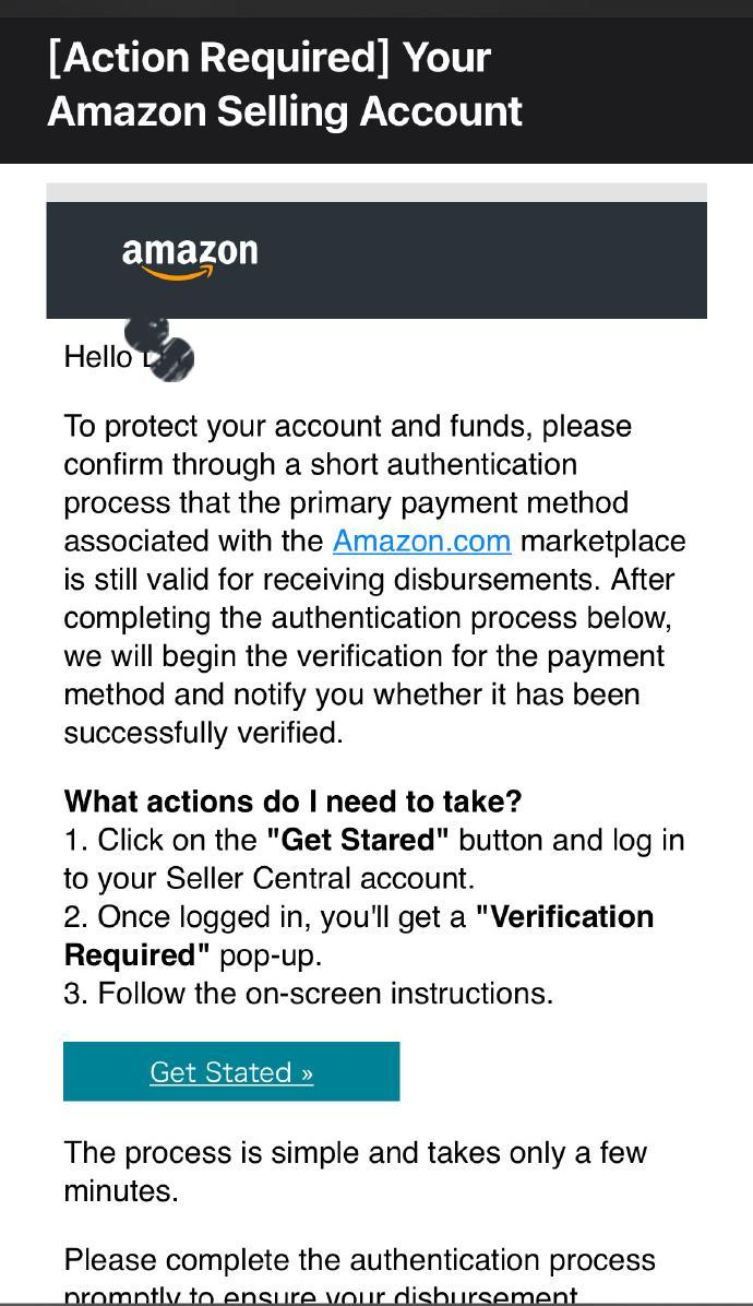 @amazon.com,amazon前面是沒有什么東西的。另外,有賣家發現,一部分郵件甚至出現了拼寫錯誤,將開始按鈕“get started”編寫成“get stated”“get stared”。